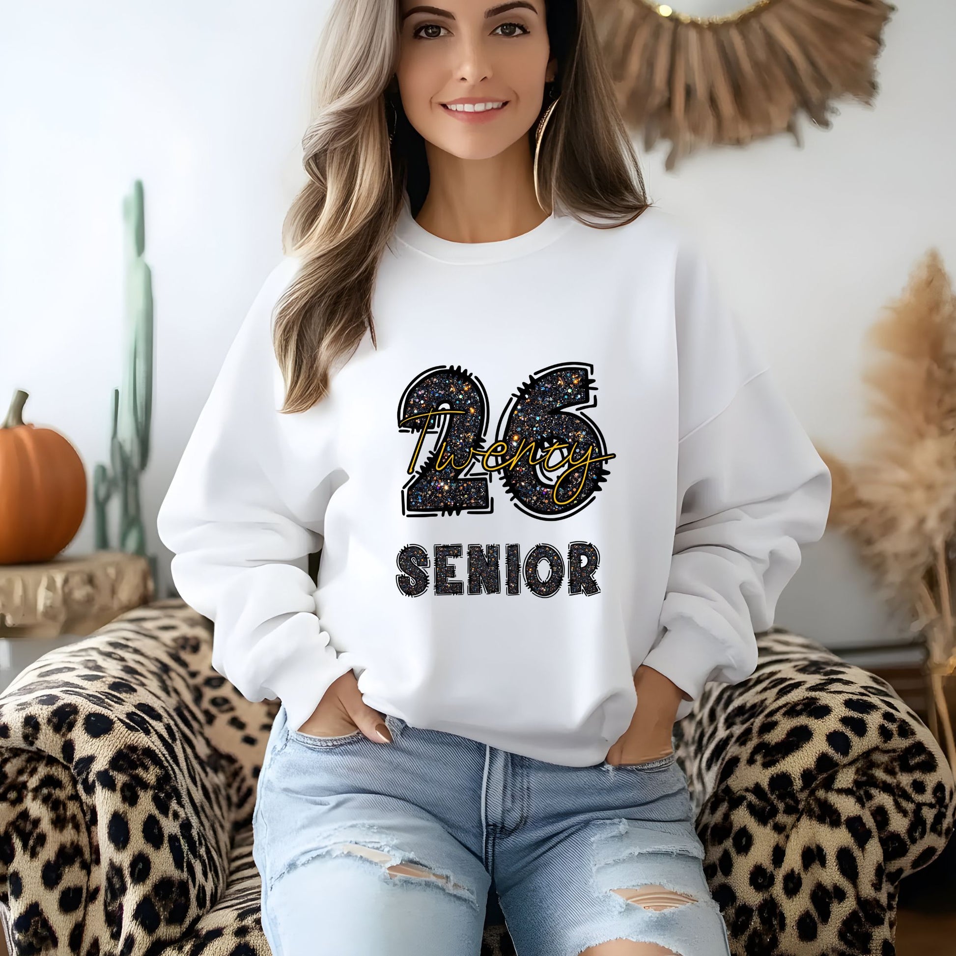Celebrate your senior year in style with this crisp white Gildan crewneck sweatshirt. Made for comfort and fun, it’s perfect for lounging or showing off your 2026 pride. Cozy up and make your final year unforgettable with a sweatshirt as bright as your future!